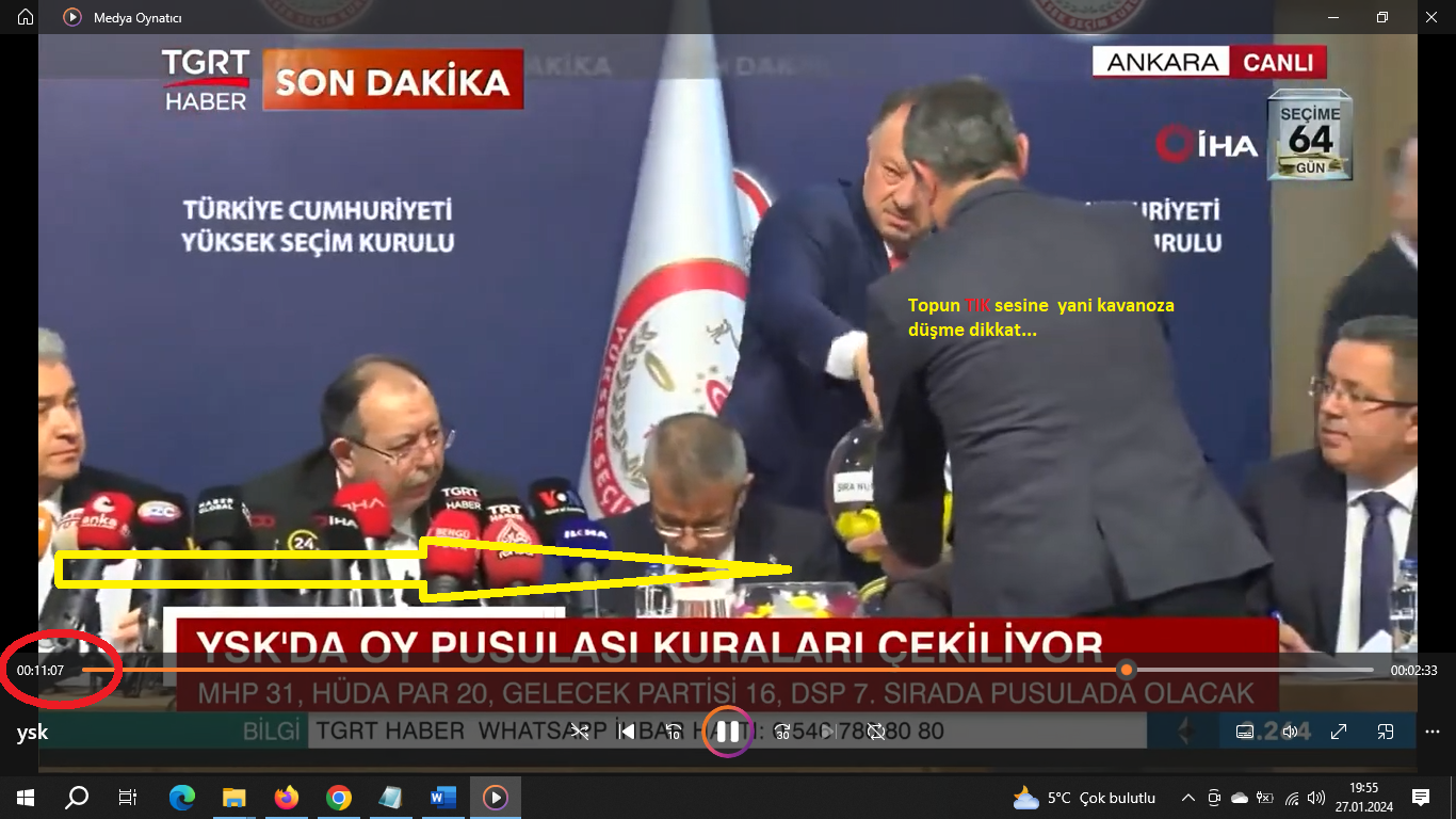 YSK'nın kura çekimi yaptığı videoda 00:11:06 ile 00:11:07 saniye arasına dikkat ediniz.